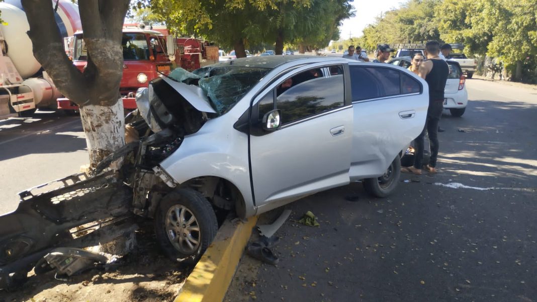 COFRADÍA DE NAVOLATO, Sin.- El conductor de un automóvil sedán resultó herido y enviado a un hospital tras un accidente registrado en la carretera Culiacán-Navolato a la altura de un popular taste.