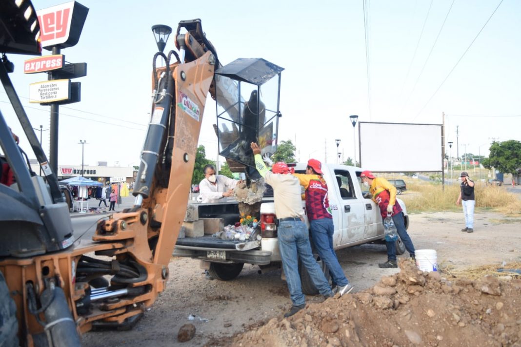 Personal de esta coordinación procedió a remover la base de herrería fijada al suelo y rodeada por bloques de concreto, para así despejar el área de esta estatua alusiva a la “santa muerte”.