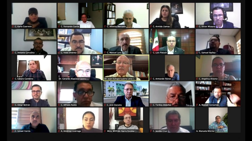 En una reunión virtual, el rector encabezó esta reunión donde dio la bienvenida el secretario General, doctor Gerardo Alapizco Castro, a los funcionarios universitarios y a los presidentes de los colegios por áreas del conocimiento que integran esta comisión.