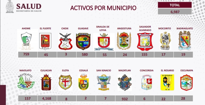 CULIACÁN, Sin.- Sinaloa sumó los 6 mil 987 casos de COVID-19, de los cuales Culiacán acaparó los 4 mil 168 casos, informó la Secretaría de Salud.