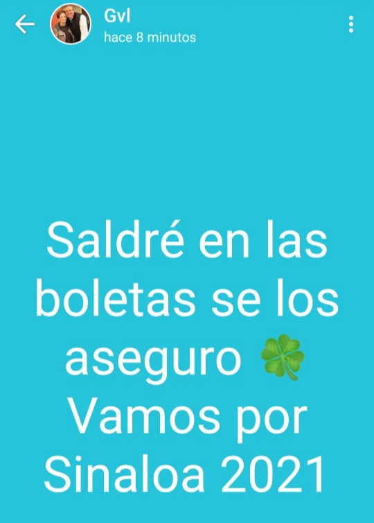 CULIACÁN, Sin.- “Saldré en las boletas, se los aseguro”, escribió en su estado de WhatsApp el político sinaloense tras la definición de Morena en su candidato a gobernador.