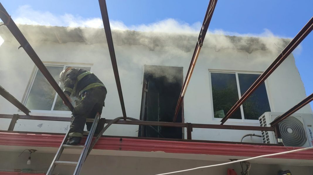 El siniestro dejó daños parciales en el inmueble al que acudieron elementos de la Policía Municipal y el cuerpo de bomberos.