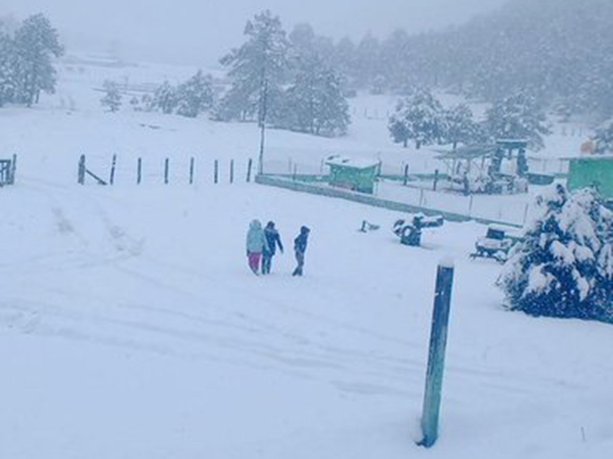 Protección Civil Municipal de Tepehuanes confirma nevadas en las localidades de Buenos Aires, Ciénega de Frailes, El Columpio, Potrerillos, El Huacal y El Conejo.