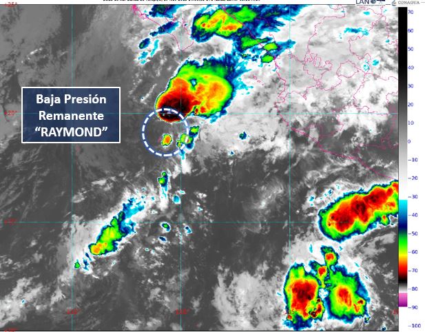 CIUDAD DE MÉXICO.- “Raymond” se ha debilitado a una “Baja Presión Remanente” al sur-suroeste de Baja California Sur.