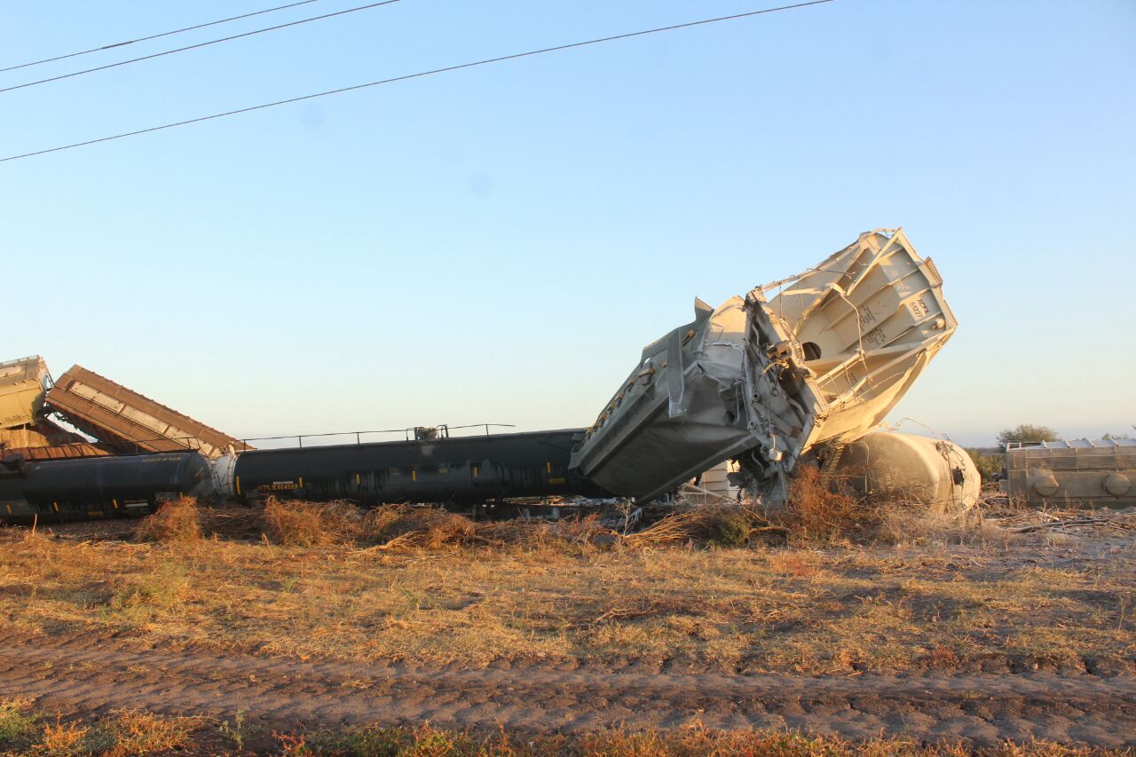 NAVOLATO, Sin.- Un tren que transportaba en algunos vagones amoniaco se descarriló en en un tramo entre las localidades de Tierritas y Estación Retes en el municipio de Mocorito.