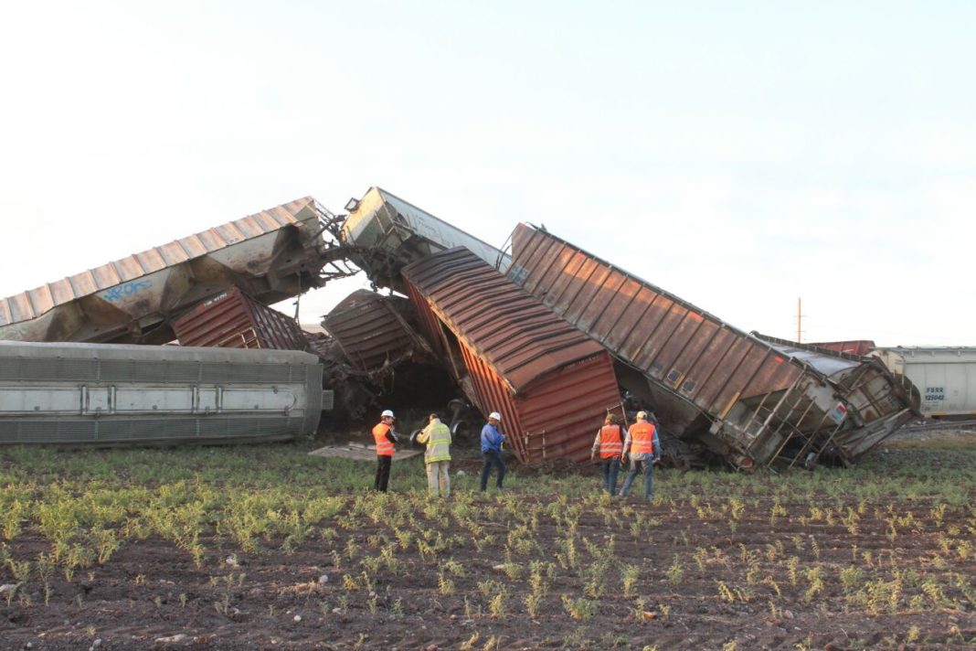 NAVOLATO, Sin.- Un tren que transportaba en algunos vagones amoniaco se descarriló en en un tramo entre las localidades de Tierritas y Estación Retes en el municipio de Mocorito.