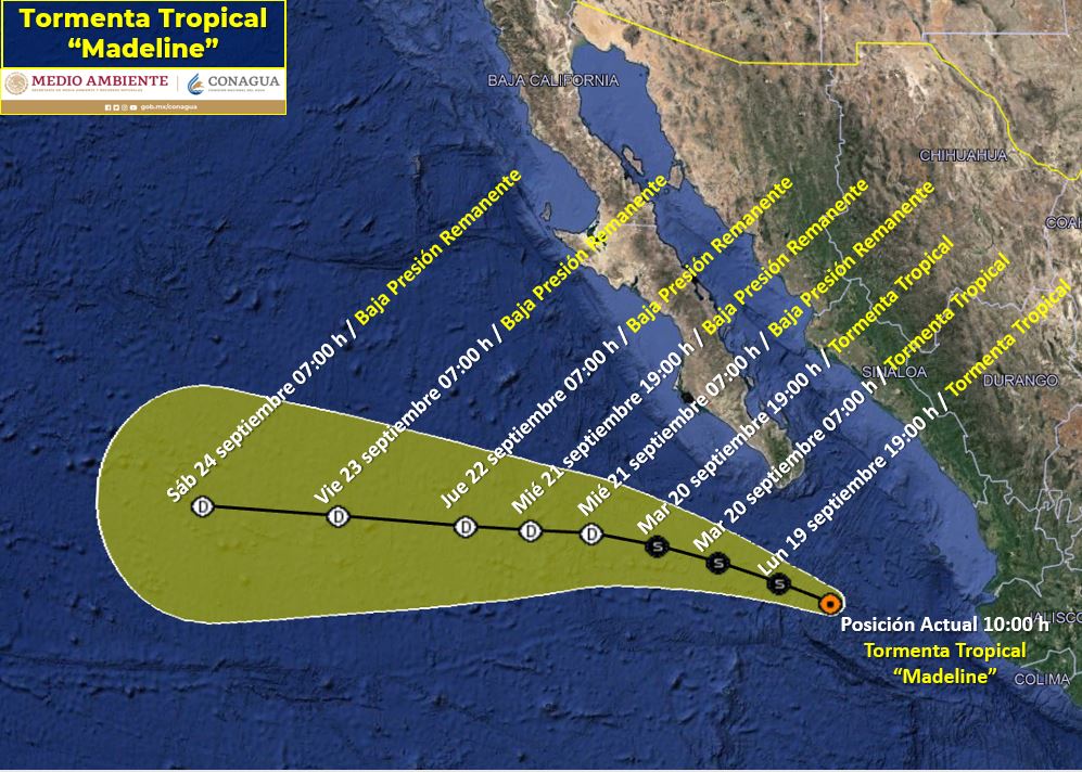 Se desplaza tormenta Madeline cercana a la costa
