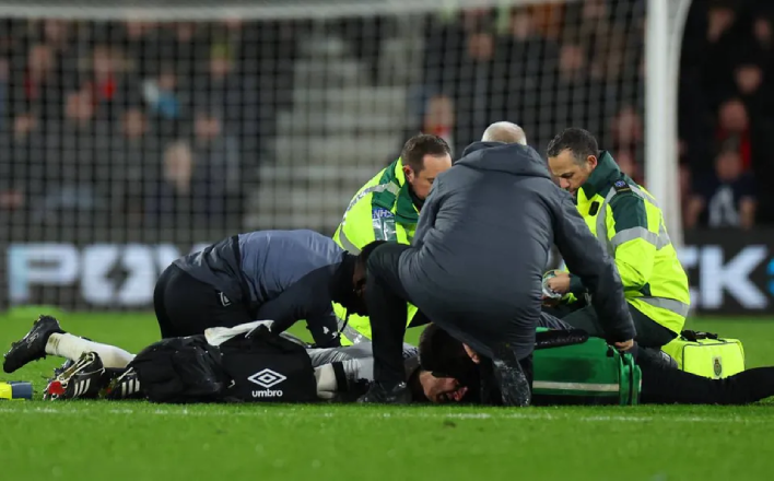 Al borde de la hora de juego, con 1-1 en el marcador, de repente, cerca del medio campo, el defensa se desplomó solo, sin ningún golpe previo, sin ningún jugador a su lado, cuando el juego transcurría por otro sector del terreno del Estadio Vitality.