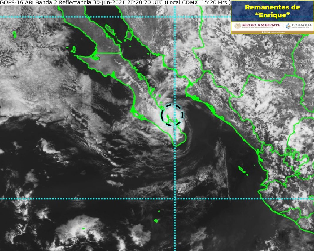 CIUDAD DE MÉXICO.- “Enrique“ se ha disipado antes de tocar tierra en la costa oriental de Baja California Sur. Sin embargo, sus remanentes ocasionarán lluvias, vientos con rachas fuertes y elevado oleaje en la Península de Baja California, Sonora y norte de Sinaloa.