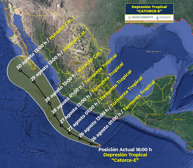 CIUDAD DE MÉXICO.- Se ha formado la depresión tropical “14-E”, su centro se localiza al sur de Guerrero, su circulación refuerza las lluvias en el sur y sureste del país.