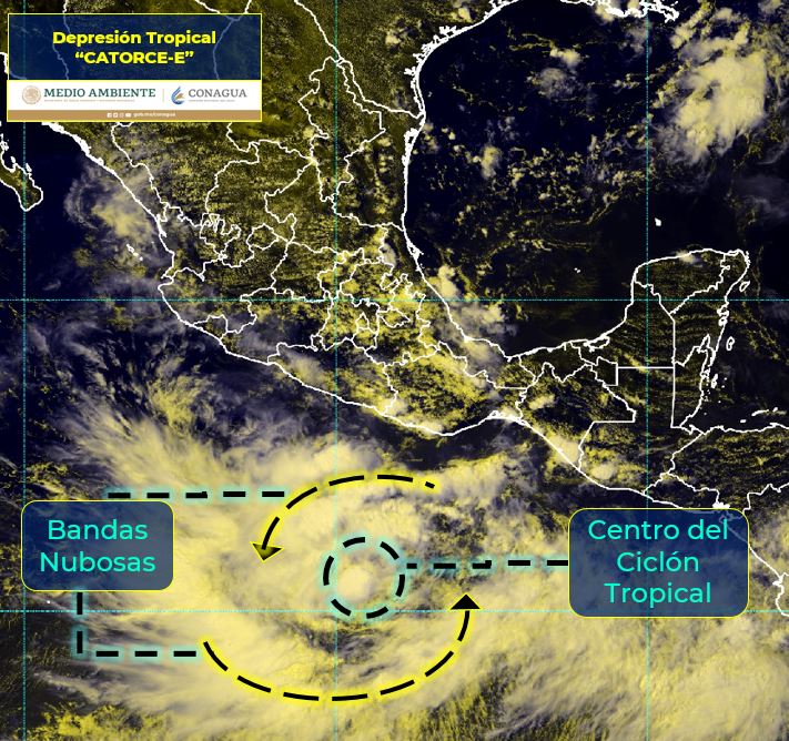 CIUDAD DE MÉXICO.- Se ha formado la depresión tropical “14-E”, su centro se localiza al sur de Guerrero, su circulación refuerza las lluvias en el sur y sureste del país.