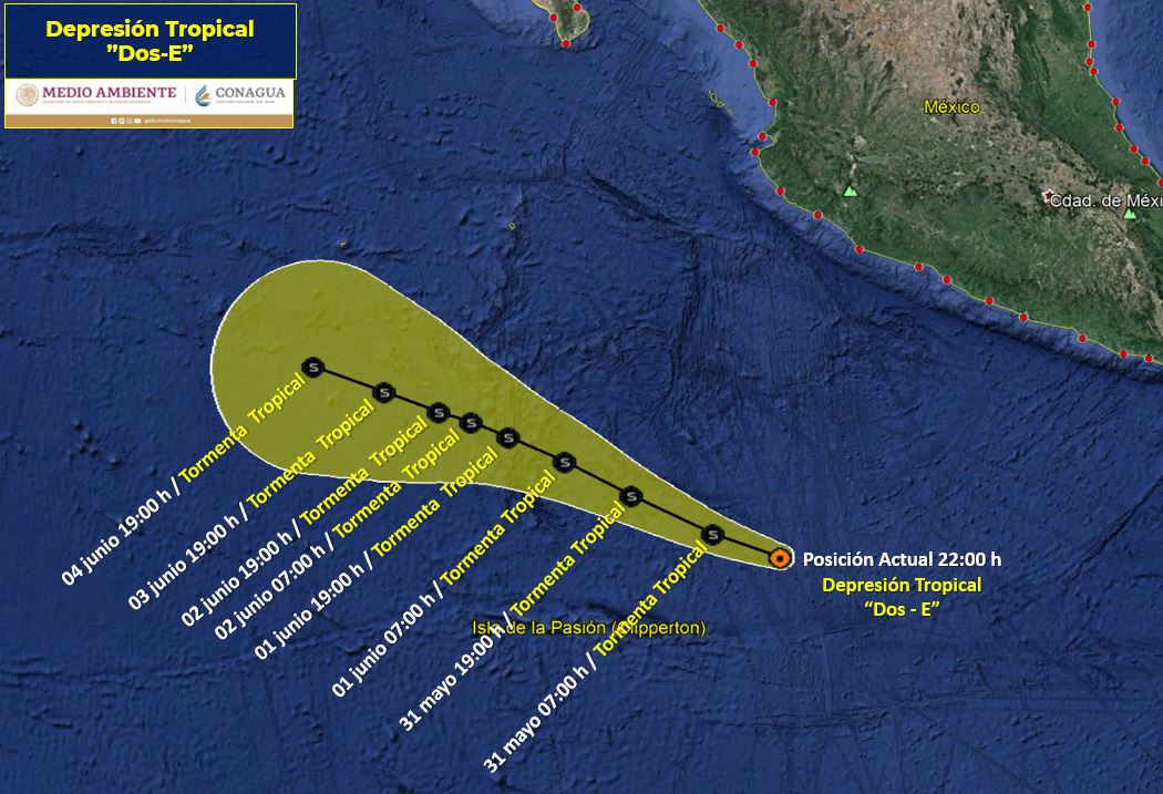 CIUDAD DE MÉXICO.- Depresión Tropical “2-E”, se mantiene al sur de Manzanillo, Colima. Su circulación refuerza el aporte de humedad en el sur de México.