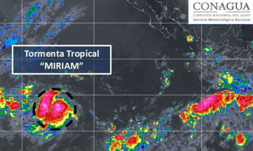 Además se ha generado la Tormenta Tropical Miriam a partir de la depresión tropical 15-E, se localiza a mil 950 kilómetros al oeste-suroeste de Cabo San Lucas, BCS. Lejos de costas nacionales.