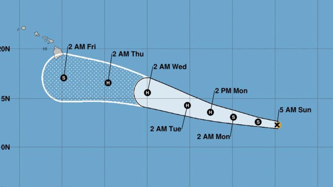La ruta prevista de la tormenta podría llevarla cerca del archipiélago de Hawai a finales de la próxima semana