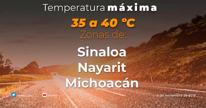 Para hoy se prevén temperaturas máximas de 35 a 40 grados centígrados para zonas de Sinaloa, Nayarit y Michoacán.