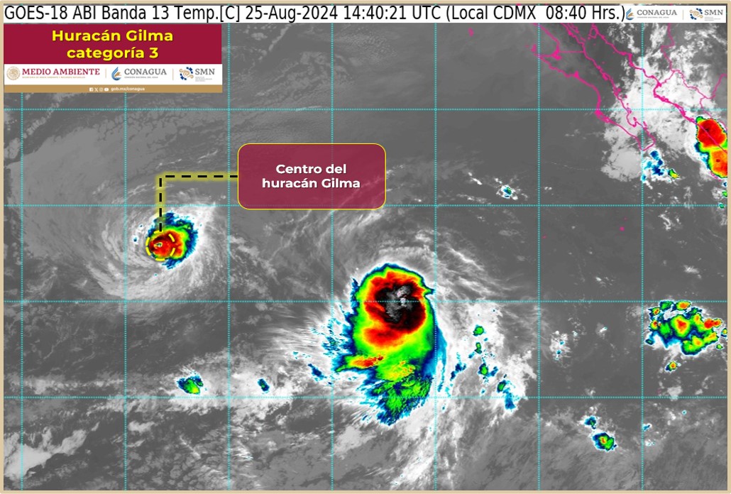 CIUDAD DE MÉXICO.- Gilma ahora como huracán de categoría 3 en la escala Saffir-Simpson, muy lejos de México.