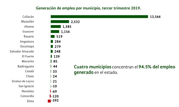 Al tercer trimestre de 2019 el municipio perdió 69 plazas seguido de Concordia con 120 y Elota con 392, según datos del Instituto Mexicano del Seguro Social.