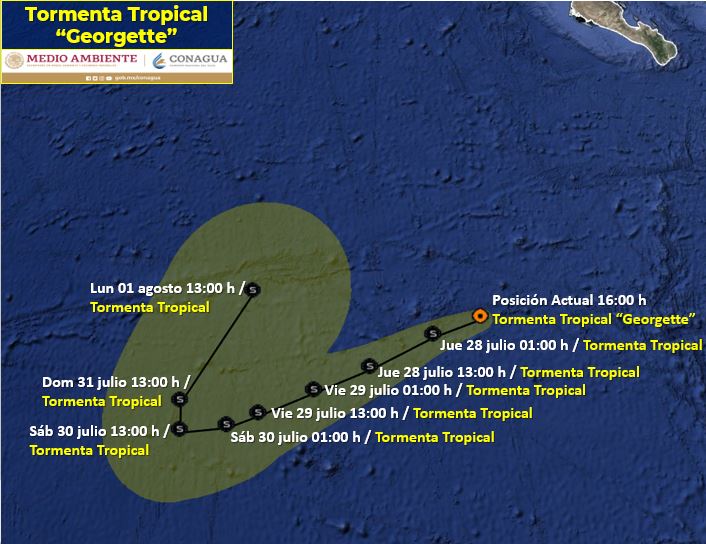 CIUDAD DE MÉXICO.- La depresión tropical “Ocho-E”, se ha intensificado a la tormenta tropical “Gergette” se localiza al suroeste de las costas de Baja California Sur.