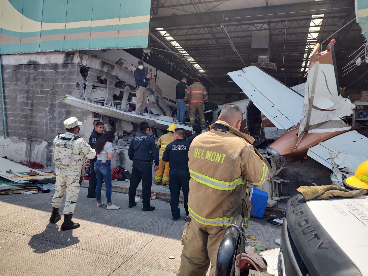 Personal de Protección Civil y cuerpos de emergencia ya se encuentran auxiliando a personas que resultaron heridas tras el accidente de una avioneta en un centro comercial de Temixco.