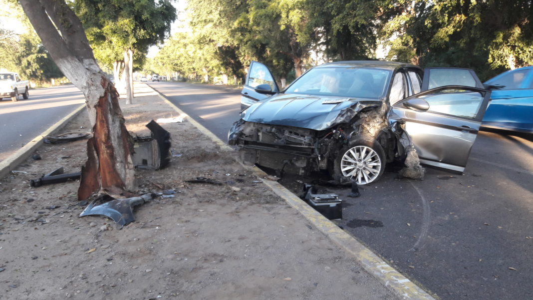 Fue llevado a Navolato para atenciones médicas menores. La unidad circulaba a exceso de velocidad de oriente a poniente y al llegar a Yebavito se subió al camellón y se impactó contra un árbol.