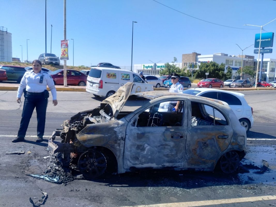 A pesar de la rápida intervención de bomberos Culiacán el fuego consumió por completo el carro pero que por fortuna la conducta resultara sin lesiones.