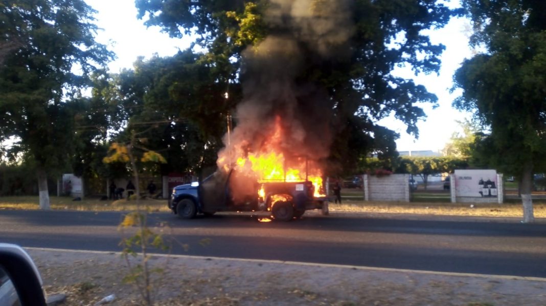 CULIACÁN, Sin.- Esta tarde-noche el registró un incendio de una patrulla en la carretera Culiacán-Navolato a la altura de la colonia Bachigualato, al poniente de Culiacán.