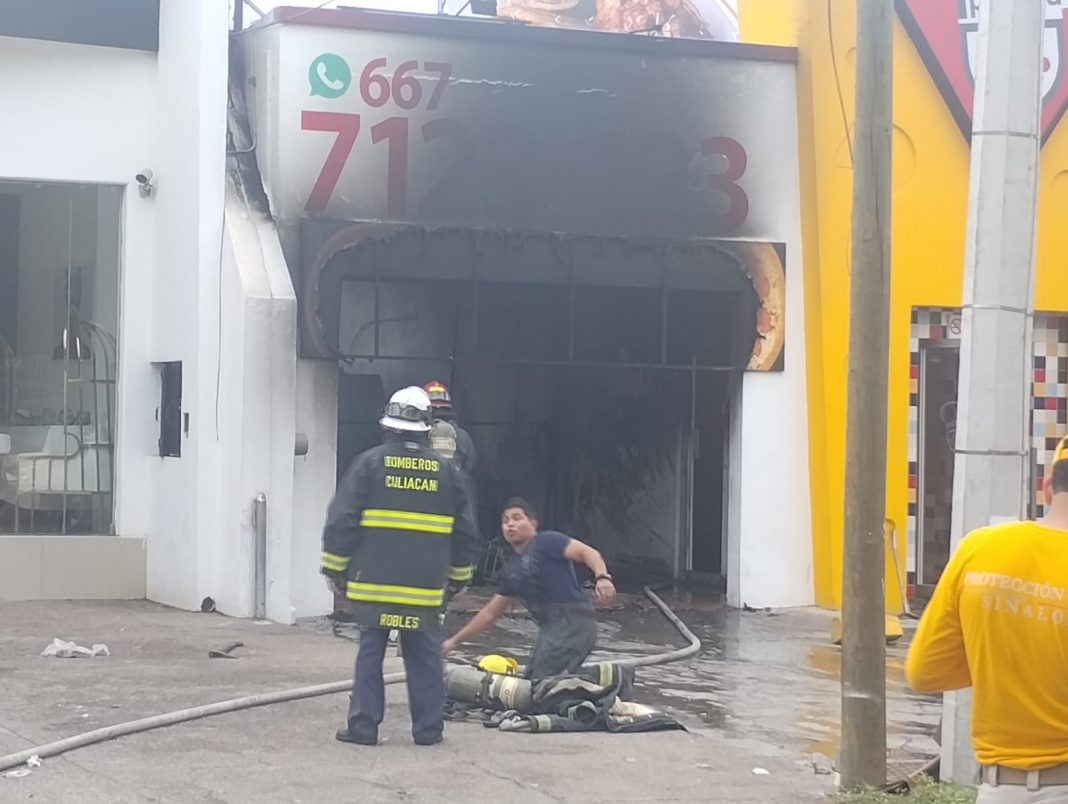 CULIACÁN, Sin.- La mañana de este martes un negocio de pizzas ubicado en el cruce del bulevar Eldorado y Xicoténcatl en la colonia Las Quintas sufrió severos daños luego de que se quemara parte de la bodega y cocina.