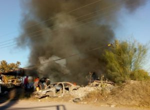VILLA JUÁREZ, Sin.- Un incendio se registró esta tarde en un yonque ubicado en carretera la 50 y entronque con carretera la 20 en la sindicatura de Villa Juárez.