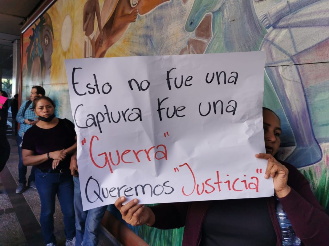 Con pancartas en mano y a gritos, exigieron al gobernador que cese la hostilidad del Ejército en la zona argumentando violaciones a las garantías individuales.