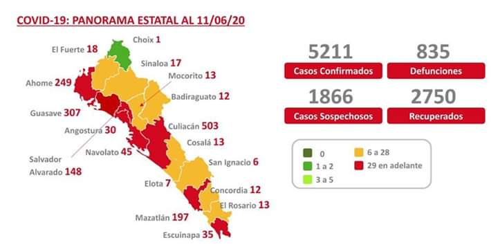 CULIACÁN, Sin.- Sinaloa alcanzó hoy 835 decesos (35 nuevos: Ahome 14, Mazatlán 9, Culiacán 4, Guasave 3, Salvador Alvarado 1, Escuinapa 1, Choix 1, San Ignacio 1, Rosario 1).