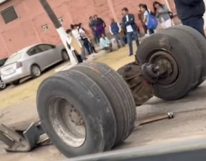El accidente se registró la tarde de este jueves sobre el bulevard Jesús Kumate en las inmediaciones de la colonia Bugambilias en donde el chofer del camión al parecer trató de golpear a otro vehículo con lo que frenó y al momento de hacer la maniobra el eje trasero junto con las llantas se desprendió lo que provocó que quedara arriba de la carrocería.