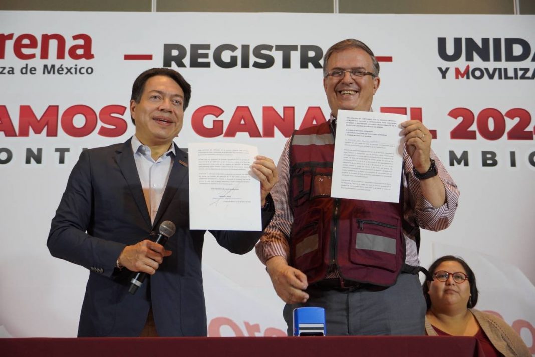 CIUDAD DE MÉXICO.- El excanciller Marcelo Ebrard Casaubón se registró como aspirante presidencial a la candidatura de Morena, siendo el primero de los cuatro aspirantes en conseguirlo.
