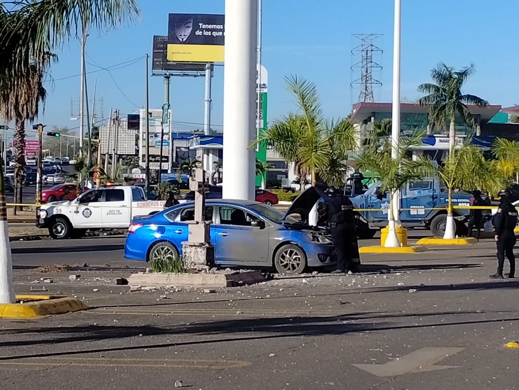 Junto al cenotafio también había un vehículo de la marca Nissan Sentra color azul el cual resultó con daños debido a la explosión.