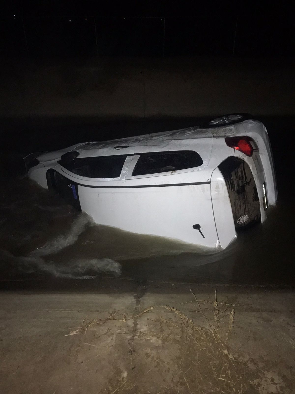 Una hora más tarde un Versa blanco sedán volcó y se precipitó al interior de un canal de riego en el poblado de Balbuena.