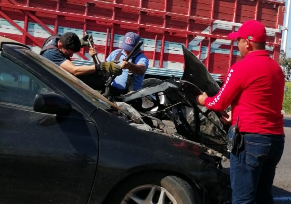 Un lesionado es el saldo de un accidente entre el camión y un automóvil sedán; los pasajeros iban a Los Cascabeles