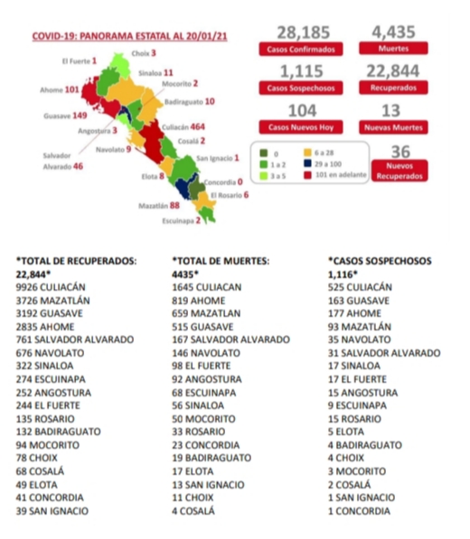 De acuerdo a la Secretaría de Salud la cifra de muertes alcanzó los 4 mil 435 en la entidad por este mal y Ahome de suma al mapa de alerta máxima por contagios