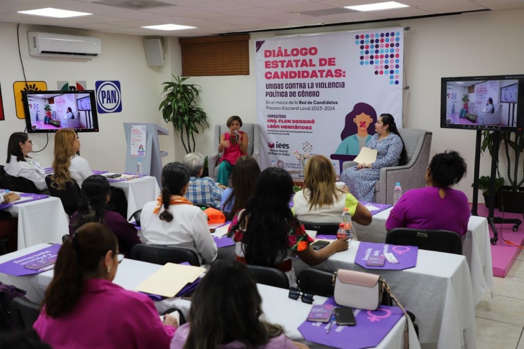 CULIACÁN, Sin.- Con la finalidad de dar seguimiento a casos de Violencia Política contra la Mujer en Razón de Género (VPMRG) para el Proceso Electoral Local 2023-2024 en Sinaloa, se realizó el encuentro: “Dialogo Estatal de Candidatas: Unidas contra la Violencia Política de Género”, en el marco del programa de la Red de Candidatas a cargos de elección popular, aprobado por el Consejo General del Instituto Electoral del Estado de Sinaloa (IEES), en conjunto con el Instituto Nacional Electoral (INE) y la Asociación Mexicana de Consejeras Estatales Electorales A.C. (AMCEE).