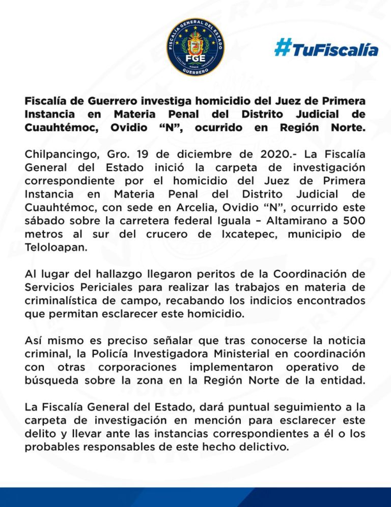 A LA OPINIÓN PÚBLICA:https://t.co/1rKonZTjzu— @Poder Judicial del Estado de Guerrero (@PJE_Guerrero) December 19, 2020