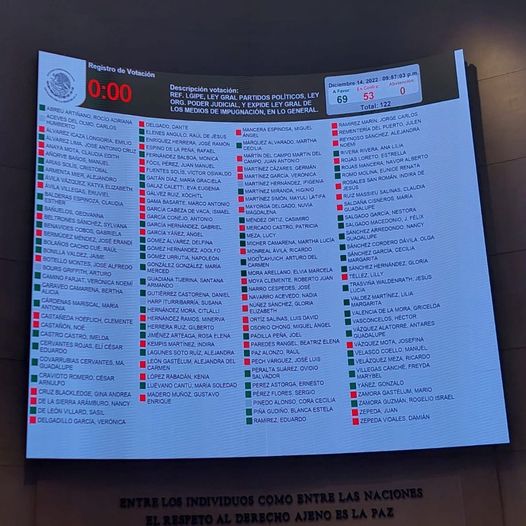 Esto con el voto en contra del coordinador Morenista Ricardo Monreal y otro legislador de esa bancada, quienes se sumaron al rechazo del bloque opositor a la reforma a seis ordenamientos en materia electoral.