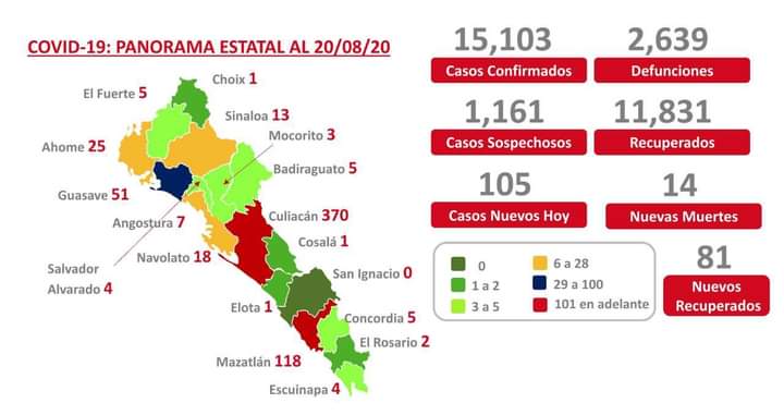 (81 nuevos: Mazatlán 41, Culiacán 31, Guasave 3, Angostura 2, Rosario 1, Escuinapa 1, Mocorito 1, Badiraguato 1)