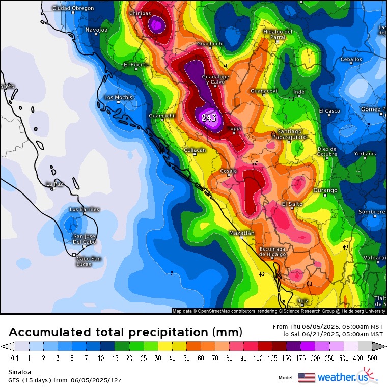 Para la segunda quincena de junio, se espera que las lluvias se intensifiquen. Se pronostican acumulados de 100 a 150 mm en la sierra. En el centro y sur, las precipitaciones podrían oscilar entre los 40 a 80 mm, y de 20 a 40 mm en el centro-norte. Las zonas más secas seguirán siendo Ahome, Guasave y Juan José Ríos, con acumulados esperados de entre 5 a 15 mm. Estas lluvias podrían ser benéficas para mitigar los efectos de la sequía