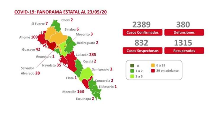 Sinaloa suma 380 muertos por COVID-19; 18 fallecidos más
