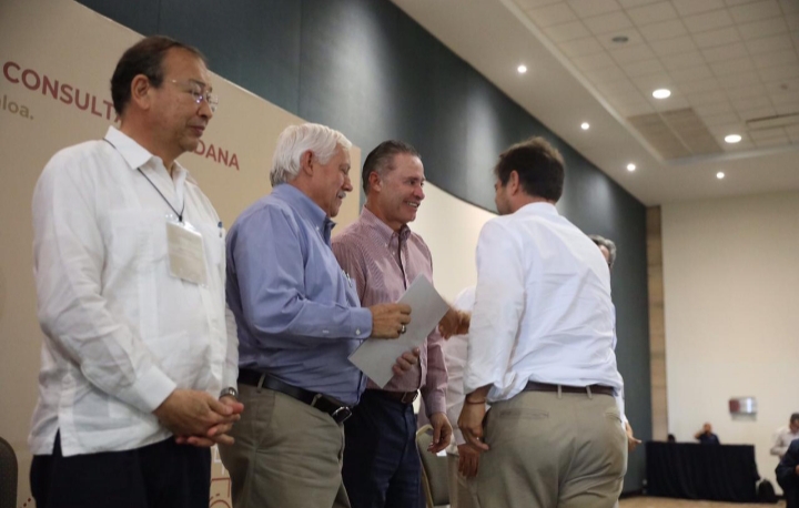 MAZATLÁN, Sin.- Al acompañar al secretario de Agricultura y Desarrollo Rural, Víctor Villalobos Arámbula, al Foro Estatal de Consulta Ciudadana para el Plan Nacional de Desarrollo 2019-2024 celebrado en Mazatlán, el gobernador Quirino Ordaz Coppel consideró muy atinado que sea en las regiones donde se recojan las propuestas para elaborar este plan rector, pues es aquí en lo local donde surgen los planes de solución para encontrar un mejor desarrollo del país.