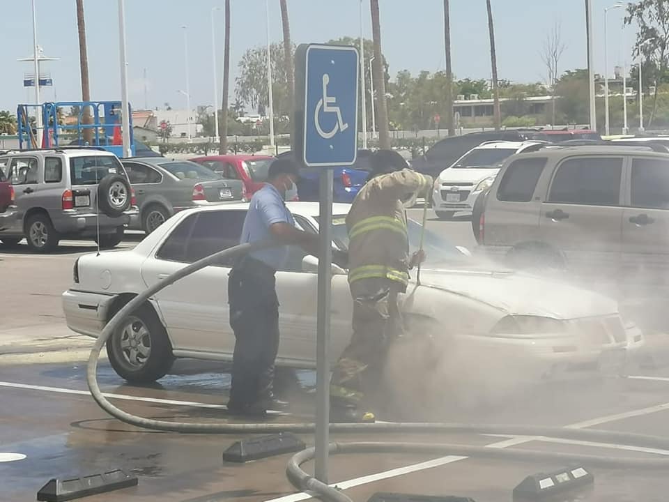LOS MOCHIS, Sin.- Un automóvil particular fue apagado tras un incendio en el motor de la unidad en una plaza comercial de Los Mochis.