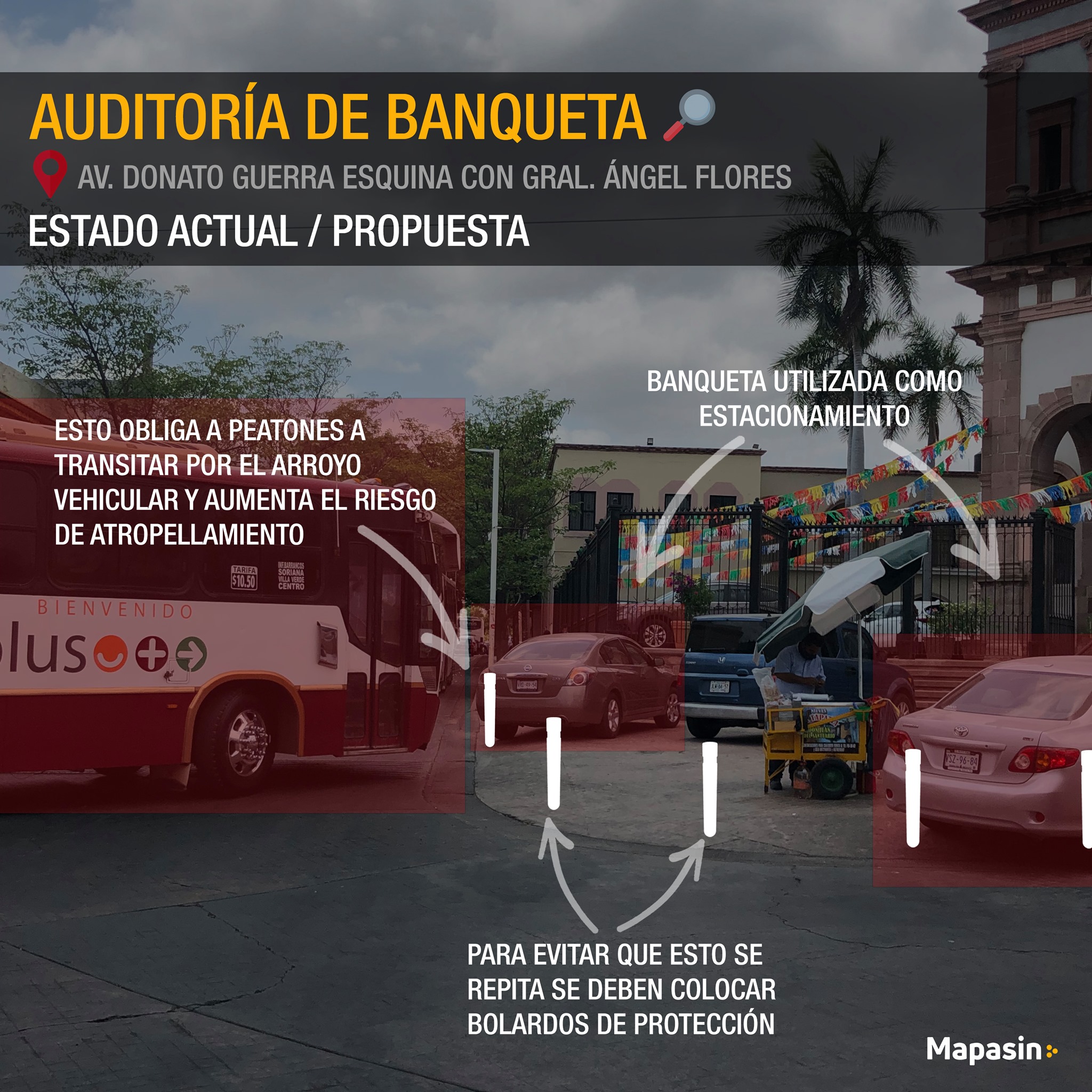 Las banquetas como principal espacio público destinado para la movilidad peatonal, con frecuencia son siniestradas al ser utilizadas como estacionamiento de automóviles. Esto obliga a las y los peatones a transitar por vías del tráfico vehicular, lo que pone en riesgo su seguridad y hasta la vida misma.
