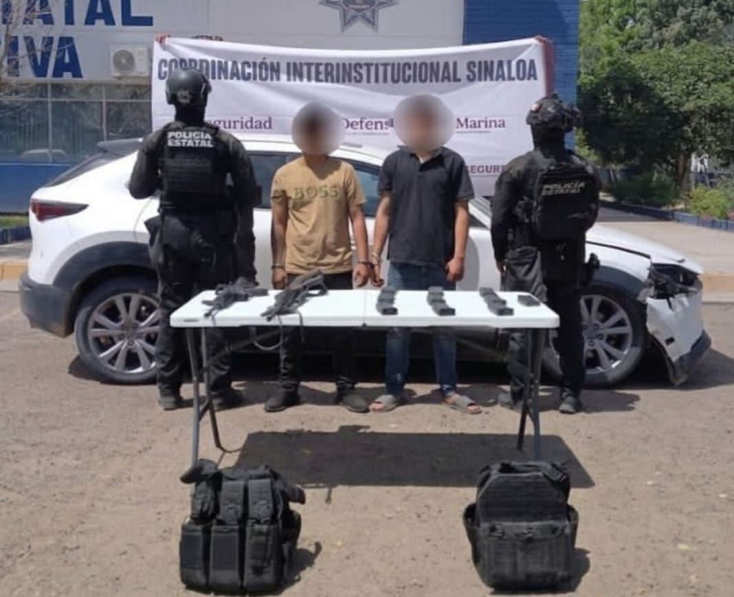 CULIACÁN, Sin.- Elementos de la Secretaría de Seguridad Pública de Sinaloa, a través del Grupo de Operaciones Especiales de Sinaloa (GOES) de la Policía Estatal Preventiva, en coordinación con el Ejército Mexicano, la Guardia Nacional, la Secretaría de Marina, la Secretaría de Seguridad y Protección Ciudadana, la Fiscalía General de la República y la Fiscalía General del Estado, detuvieron, en distintos hechos, a siete civiles armados al sur de Culiacán; cuatro de ellos son menores de edad.