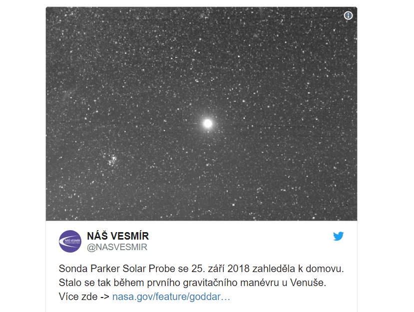 La Tierra desde la sonda Parker, actualmente de camino a su aventura solar. El "bulto" que vemos en la imágen de la derecha es nuestra Luna https://t.co/BC3rZbVixN pic.twitter.com/0oN3wsbelh