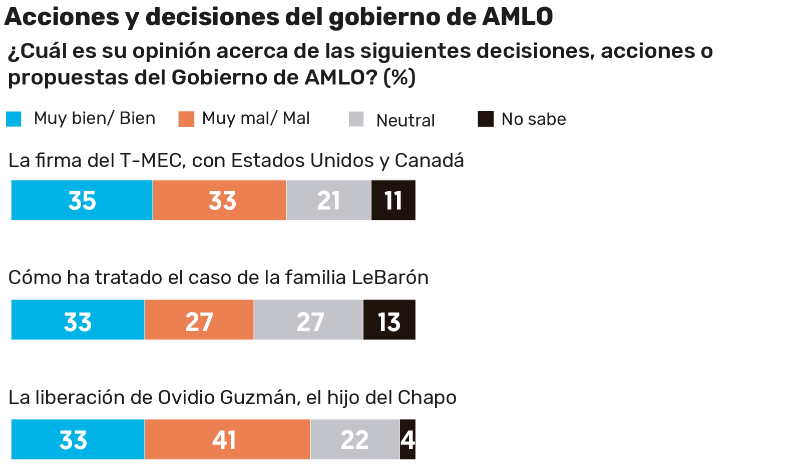 Salvo por el tema de seguridad, casi todos los rubros de gobierno medidos en la encuesta arrojaron una tendencia a favor del Presidente.