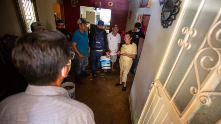 También visitó a familias de la colonia Magisterial y Macarenko, en donde personal de Ecología, Educación, IMMUJERES y otras áreas están ayudando a limpiar y a sacar el agua de las viviendas.