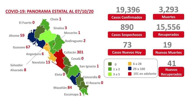CULIACÁN, Sin.- Sinaloa sumó 3 mil 293 muertes con 19 nuevos decesos, informó la Secretaría de Salud.